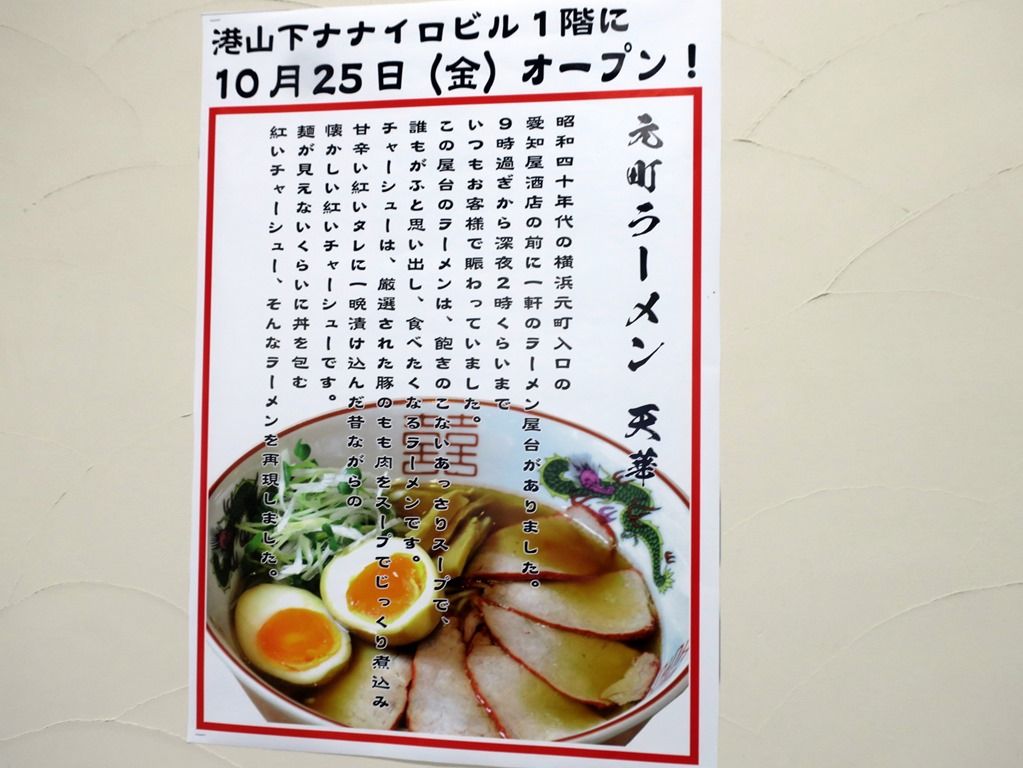 2019年9月3日、元町・中華街の新店「元町ラーメン 天華 港山下店」へ。