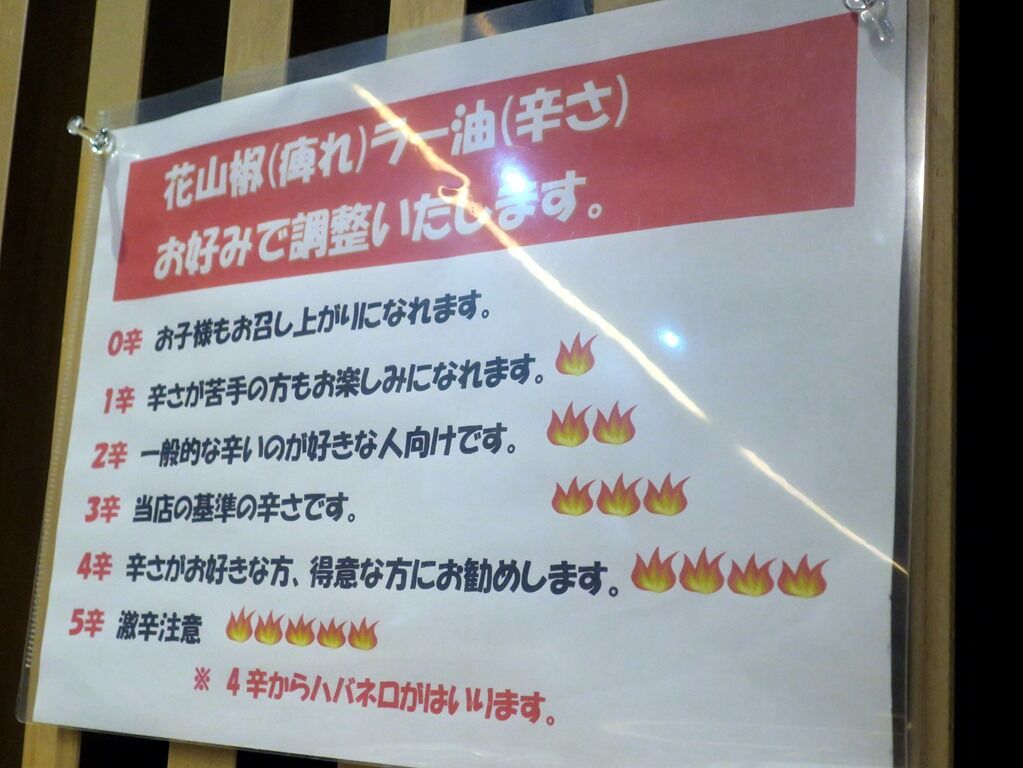 食券を渡すと辛さを聞かれます。辛さは0~5で、4からハバネロパウダー入り。「標準は3ですが結構辛いため、初めての方には2をお勧めしてます」とのこと。