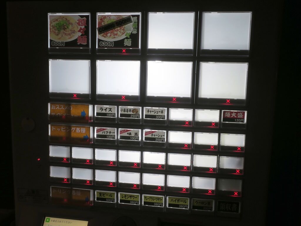 入店すると、まず券売機で食券購入です。主なメニューは、白胡麻担々麺800円、黒胡麻担々麺830円(COMING SOON)、小麻婆丼250円、チャーシュー丼300円、他。