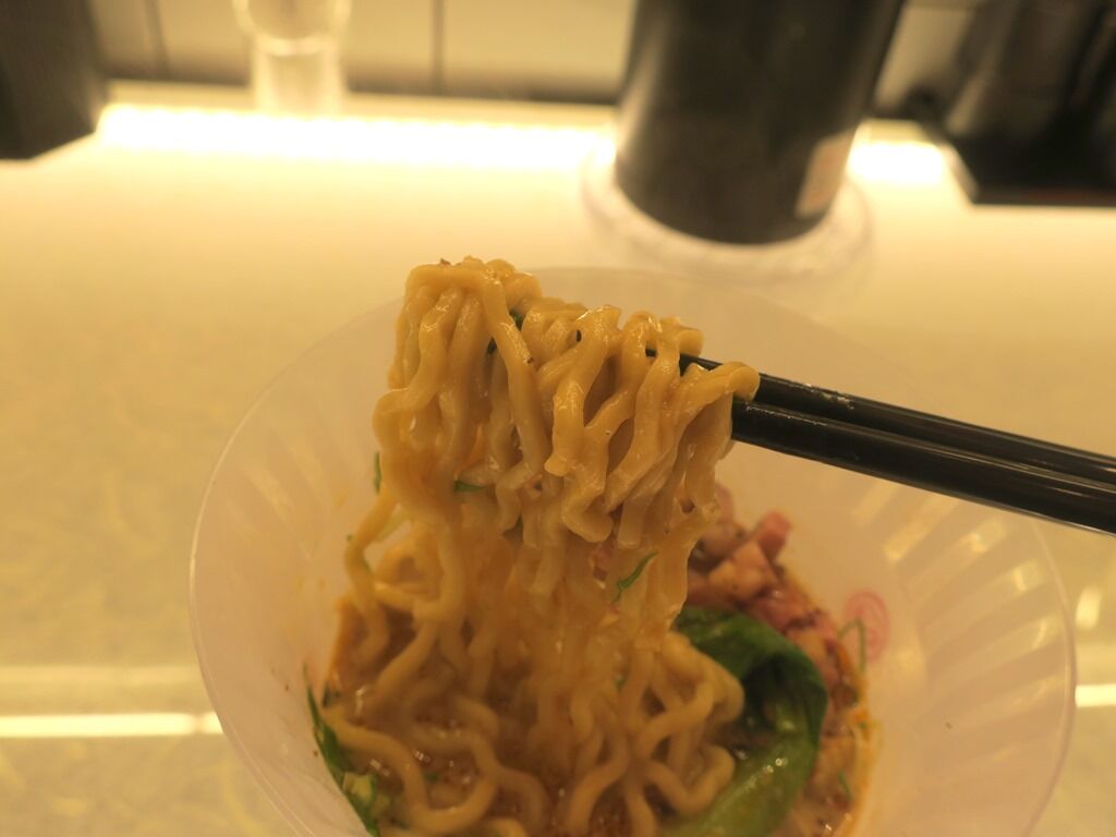 スープは、無化調でぽてっととろみのある担々胡麻辣味。レンゲはなくワンハンドでそのままごくごく飲むイメージ。牛特有の少し甘みのある出汁に唐辛子の辛味と四川山椒の痺れ。全体をアーモンドミルクでまとめて、コクと深みを演出。辛さ増し指定ですが、個人的にほぼ無辛。辛さ・痺れともに穏やかですが、スープと具が激しく旨くて、まったく不足を感じません。まるでシチューの様な洋風テイストの担々スープですごく美味しい!