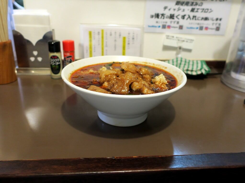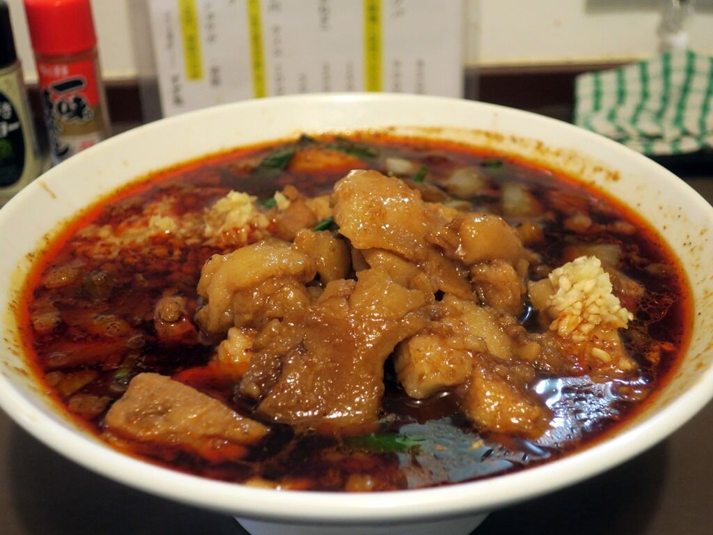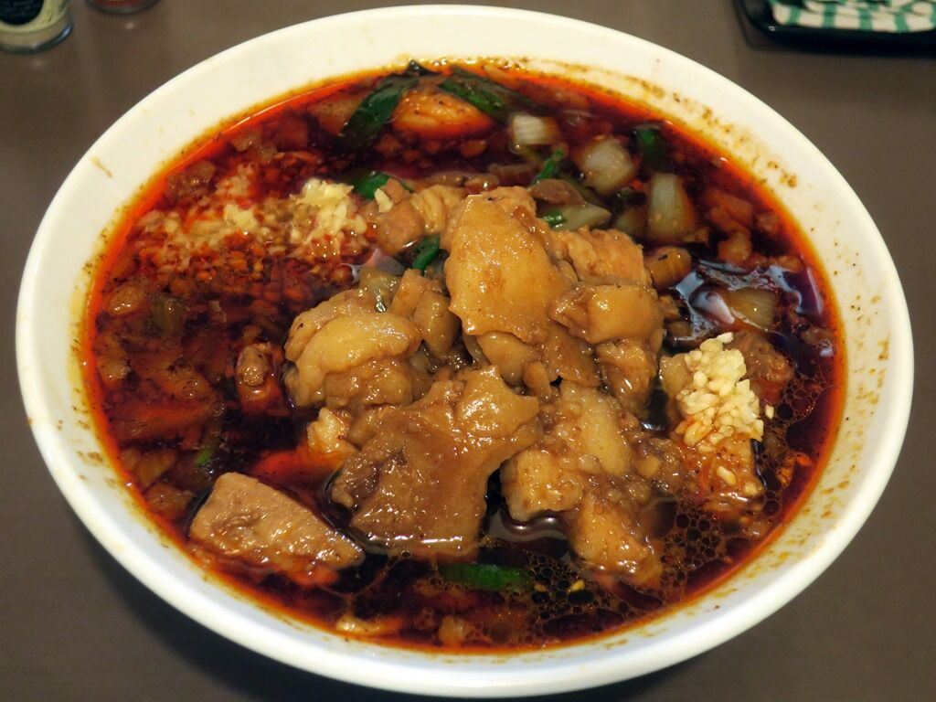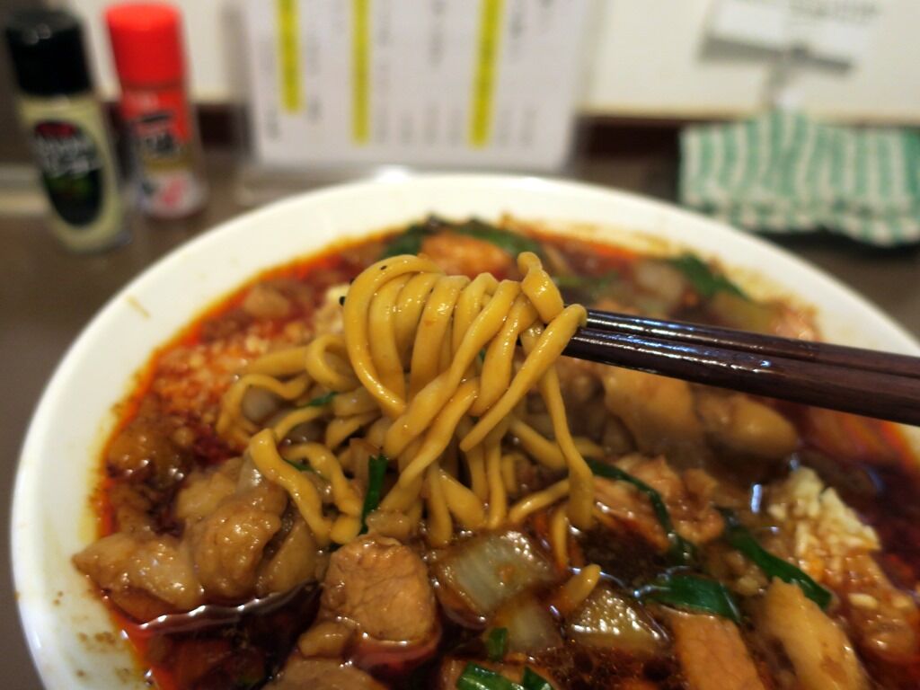 スープは脂ギッシュな豚出汁ラー油味。アリランラーメンを脂ギタギタにした感じ。おっそろしく中毒性が高くて病みつき度MAX、ジャンク&ワイルドの極みで、カロリーリミットオーバー。店主すーさんは毎日試食を重ねて4.5kg太ったとか。ヘルシーとは対極にある糖と脂の競演ですが、これが最強に美味しい!