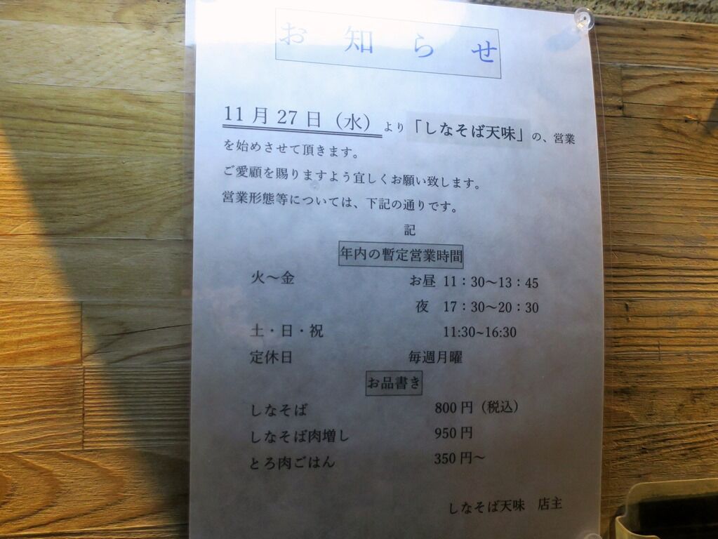 2019年11月27日オープン。2003年11月25日創業の天ぷら専門店が、ラーメン店へリニューアル。無化調でこだわりの詰まった一杯が気になって訪店。