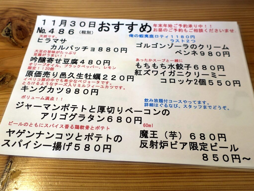 2018年3月13日オープン。グランドメニューにラーメンはありませんが、最近裏メニュー的にラーメンの提供をスタート。店主さんはなんと自家製麺ブラウン出身!(驚)