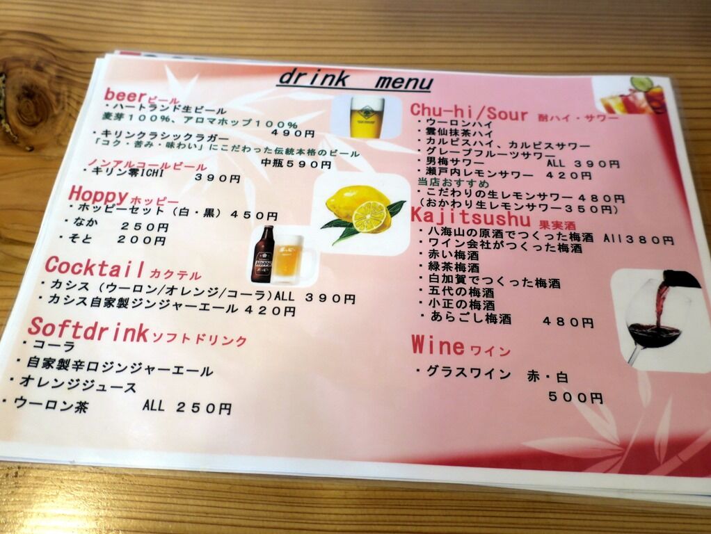 券売機は無く後会計制。メニュー価格は税別表記。ラーメンはグランドメニューには無く、あるときのみの提供。