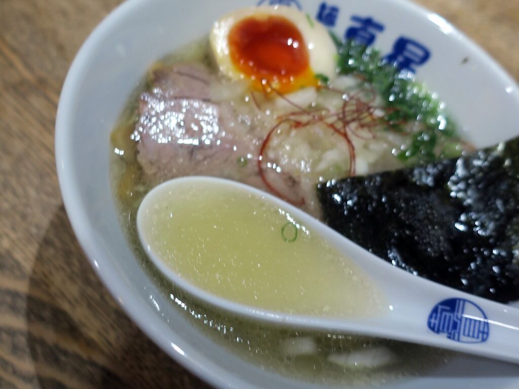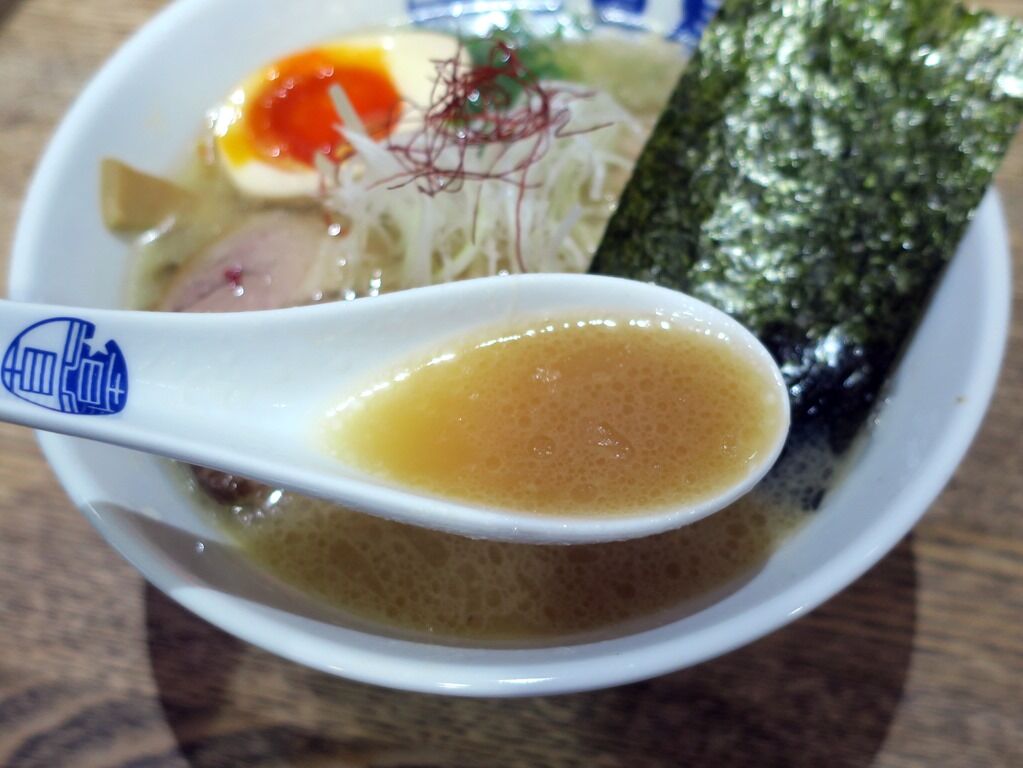 スープはわずかにとろみを感じる白湯。こちらも薄味でちょっと不思議なソフトフォーカスな印象。