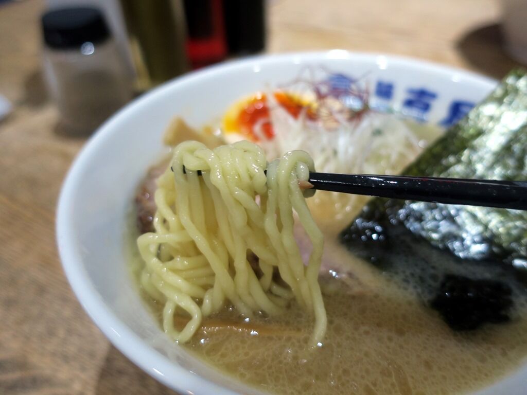 麺は中太縮れタイプで、あっさりより一回り太めの麺を使用。