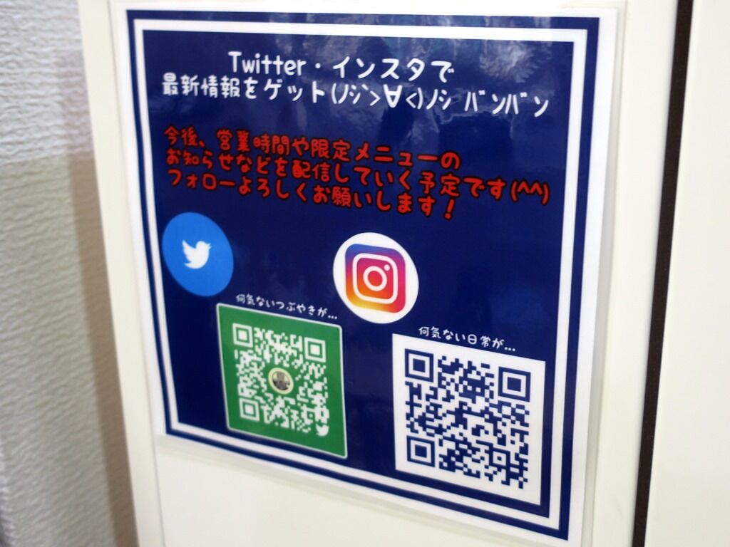 公式SNSはツイッターとインスタ。ただ、せっかくのインスタやられてるのに、ラーメン画像を1枚も載せてないのは勿体ない!