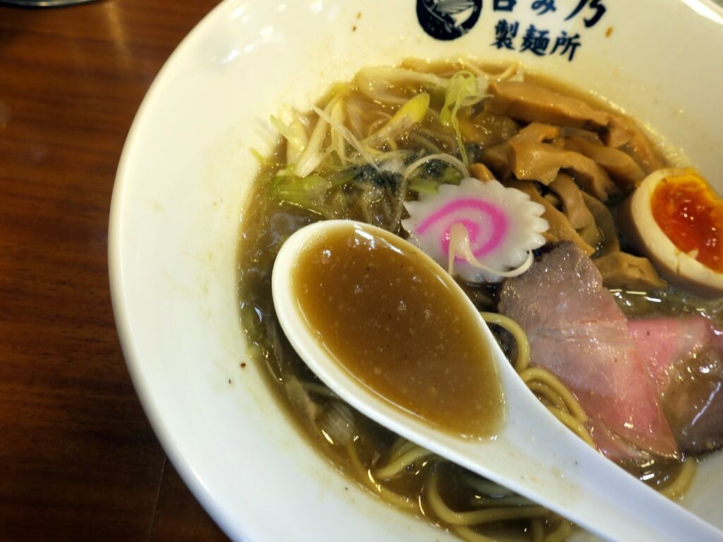 スープはとろっと濃厚なあご出汁ベースの鶏豚骨醤油味。あご出汁よりも鶏豚骨が優勢でコクとインパクトがあります。濃いめながら後味すっきりでとても美味しい!