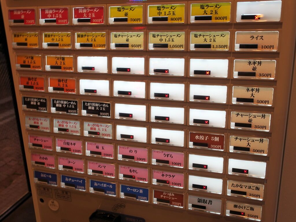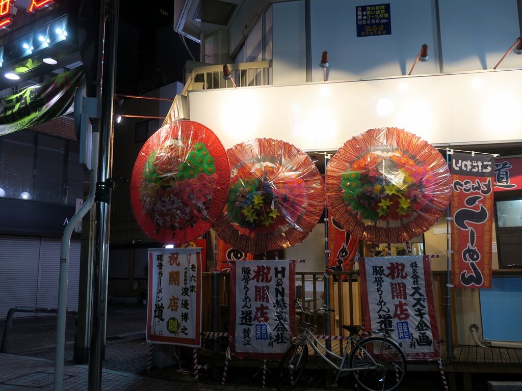 香蘭1号店→RAJ Diningと入れ替わった跡地。店舗裏にあたる平和通り側には大きな花輪、壱六家からのものがありました。入店するとまず券売機で食券購入です。主なメニューは、醤油ラーメン並700円、つけ麺並1.5玉850円、油そば並1.5玉850円、たまり醤油ラーメン細麺並750円、あっさり塩ラーメン細麺並700円、他。訪問時塩は売切れ表示。
