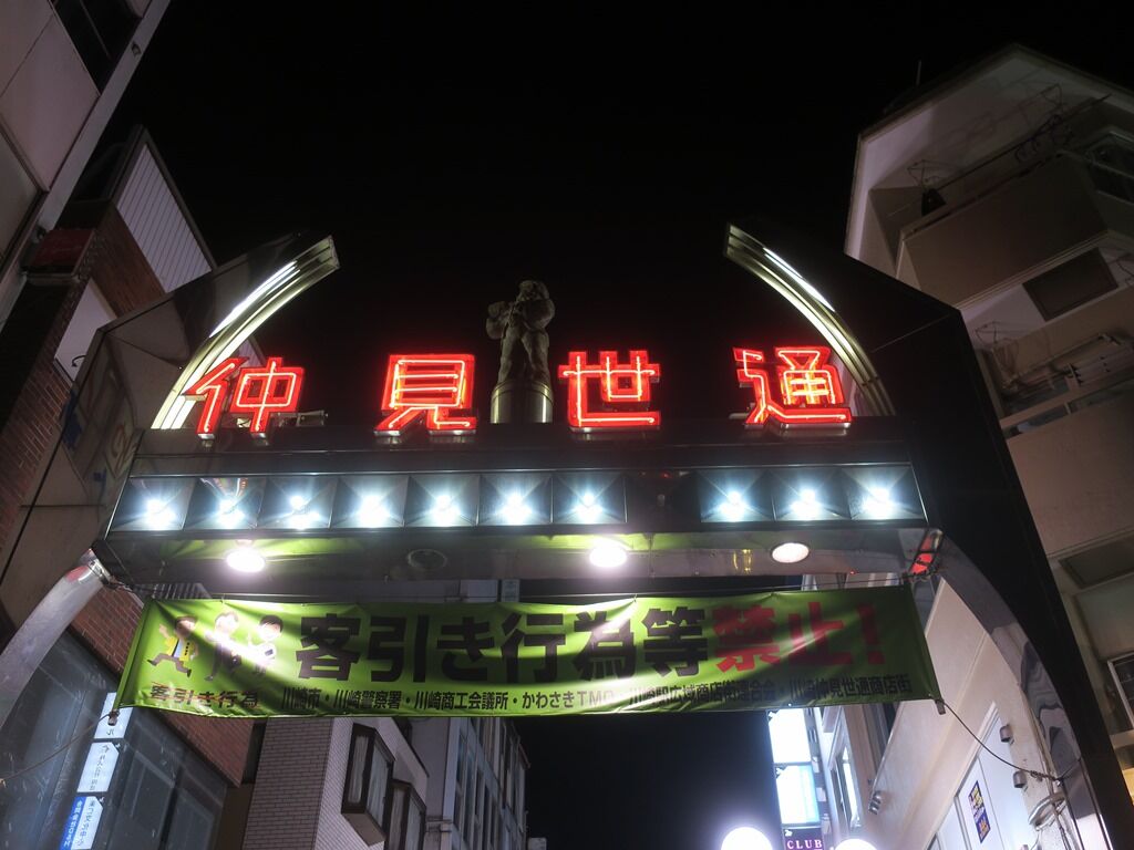 店の場所は、京急川崎駅徒歩約8分、JR川崎駅徒歩約10分。仲見世通りの端と平和通りの端が交差する角地。