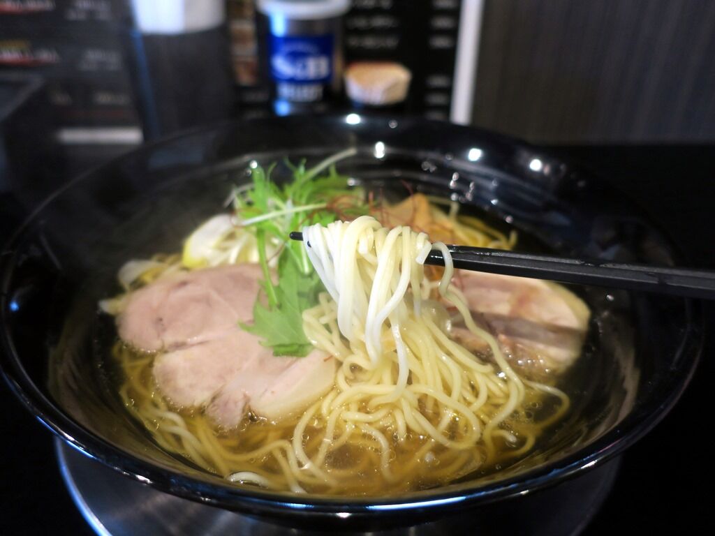 スープはさらさらの清湯醤油味。丸鶏を6時間煮込んで作った「あっさり淡麗」スープ。鶏のみとは思えない複雑な旨味があって、さらにやや旨味過多なきらいがありますが、柔らかくて優しいほっこりとする味わい。食べてを選ばない分かりやすいバランスの取れた味がポイントで、なかなか美味しい!