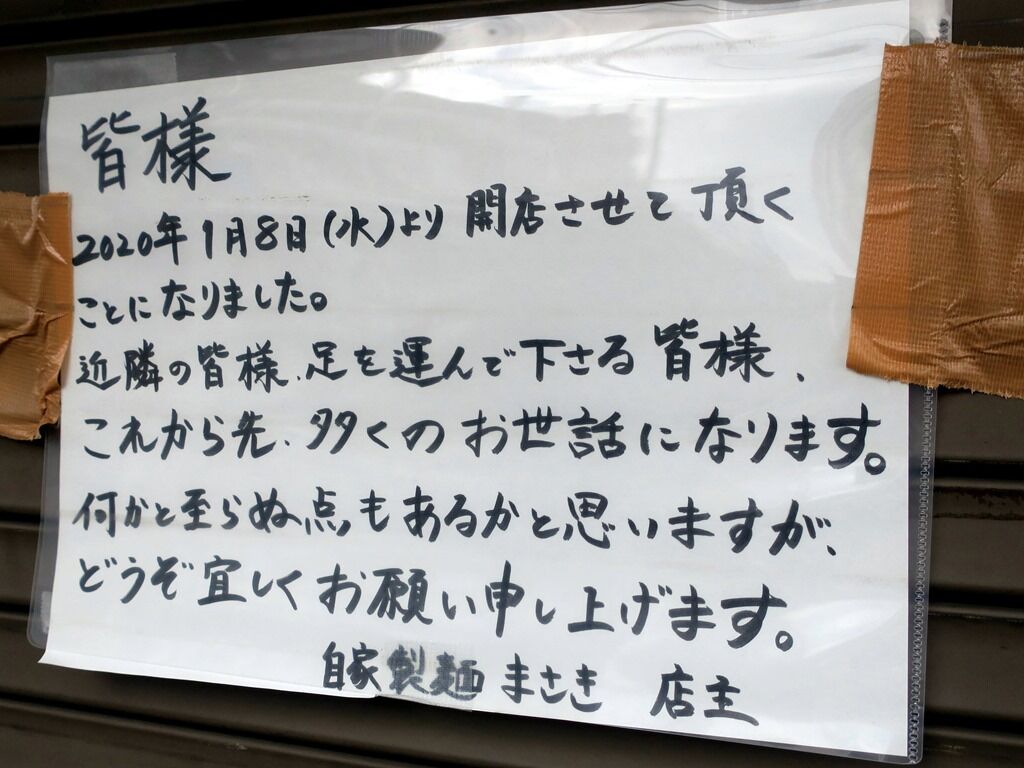 2020年1月24日、東中神の新店「自家製麺 まさき」へ。