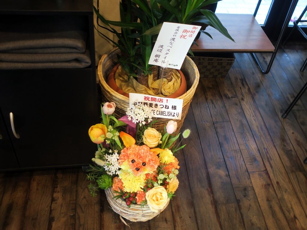 店内にも開店祝樹・祝花、渡なべスタイル、食鍛もみじ他から。