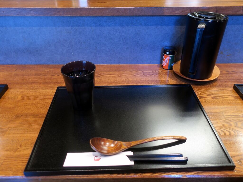 中華蕎麦は日本蕎麦にもしっくり来るサイドが水色の多用丼で着丼。