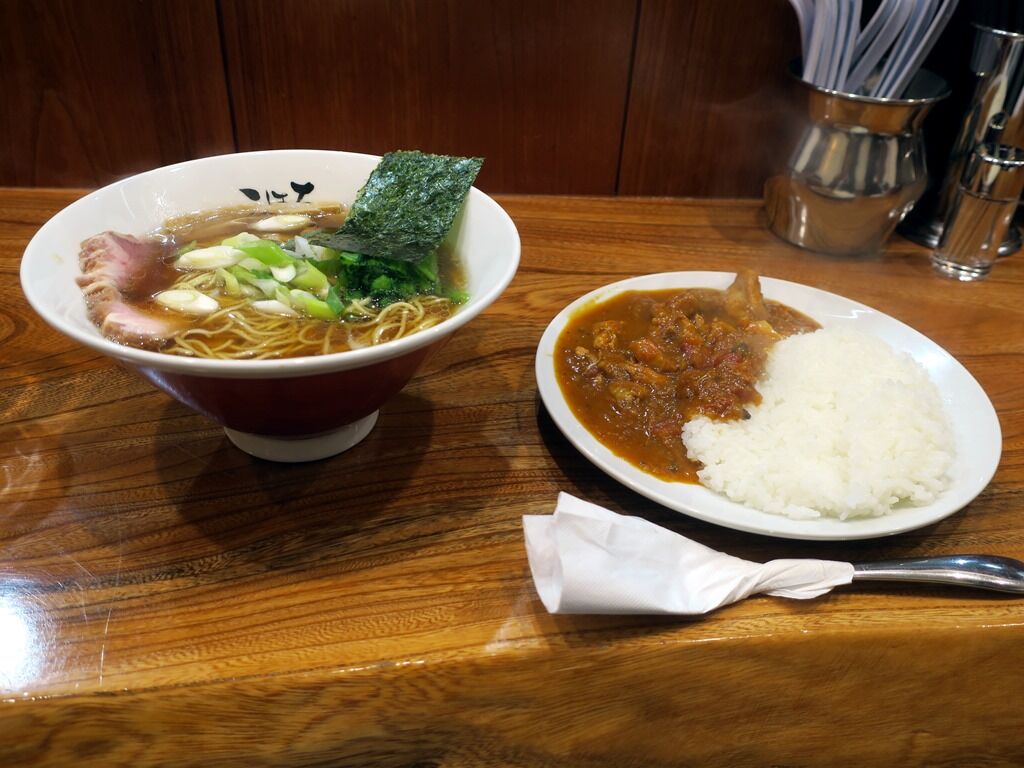具はチキンがゴロゴロ。この日はストックではなく今朝完成した出来たて。トマト風味でスパイス感満載ですが、辛くはなりません。懐かしいインディアンを思い出しますが、らーめんとカレーを交互にいただくと至福です。