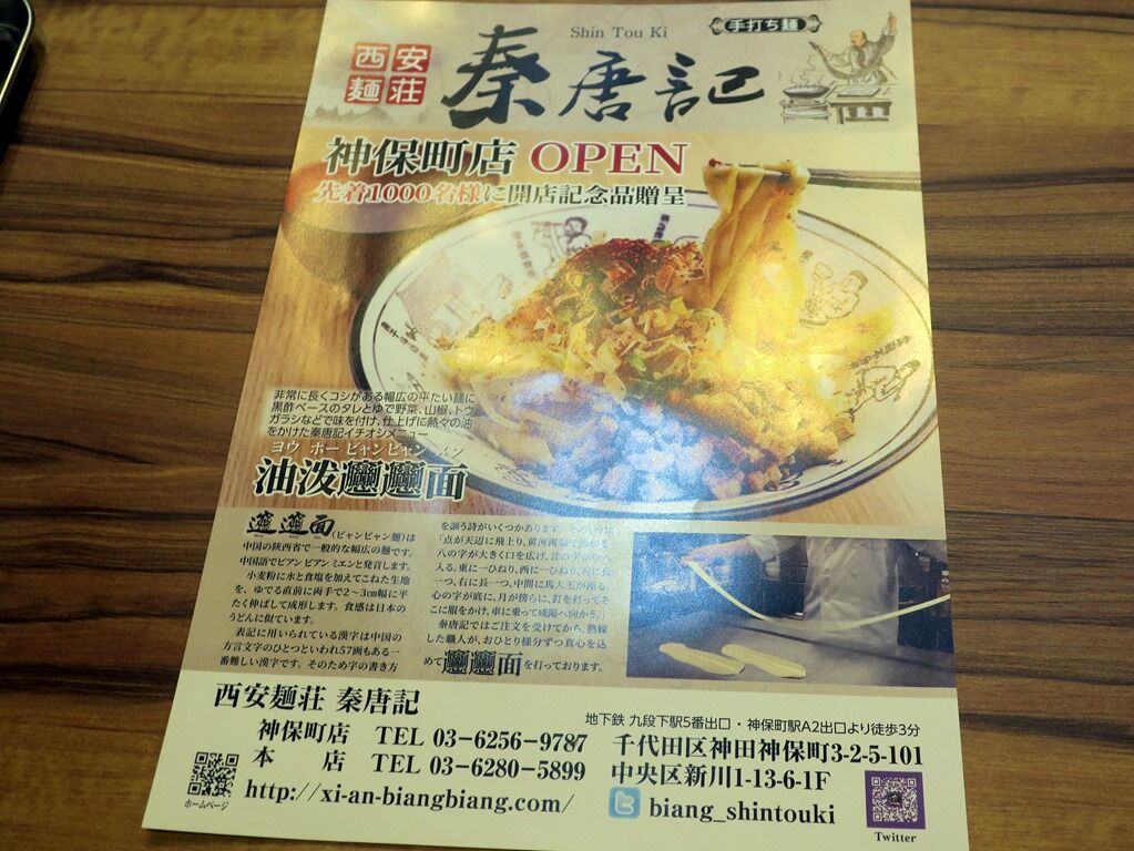 2020年2月10日大安、本日オープンの新店「西安麺荘 秦唐記 神保町店」へ。