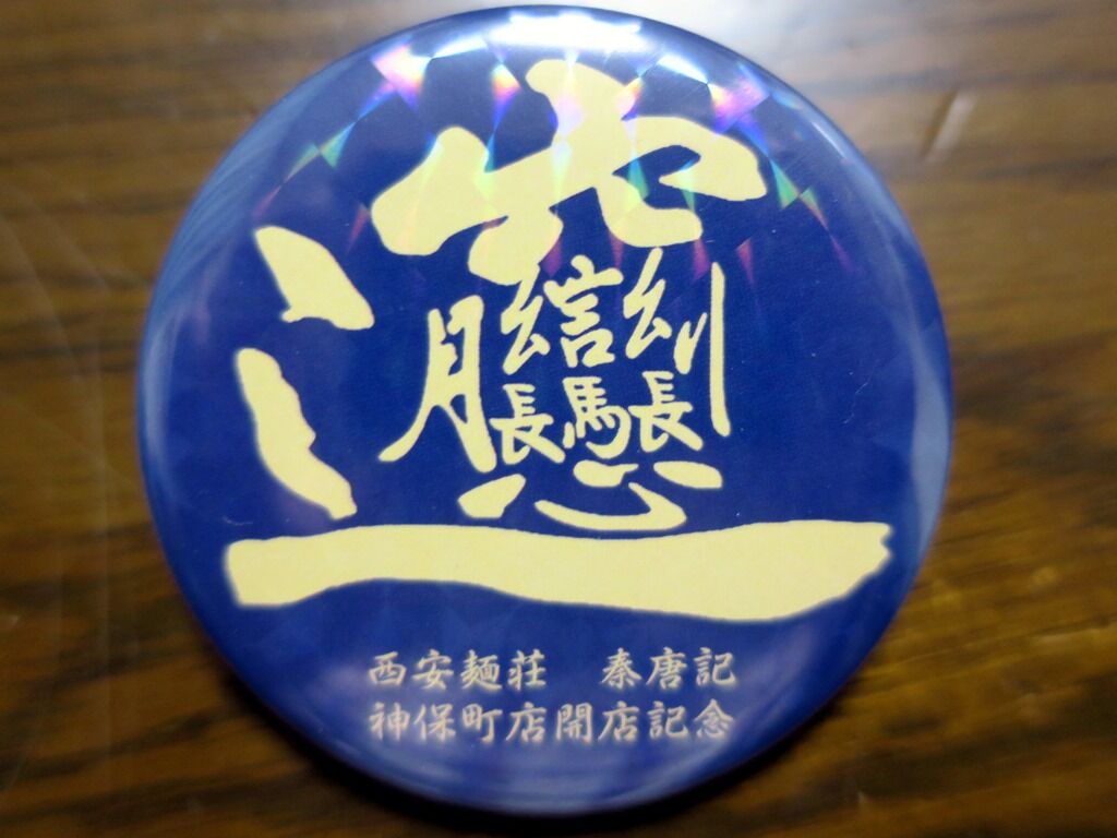 おいしく完食!会計時、オープン記念の缶バッジをいただきました。次回は、ジャージャン麺か担々麺狙いで。ごちそうさま!