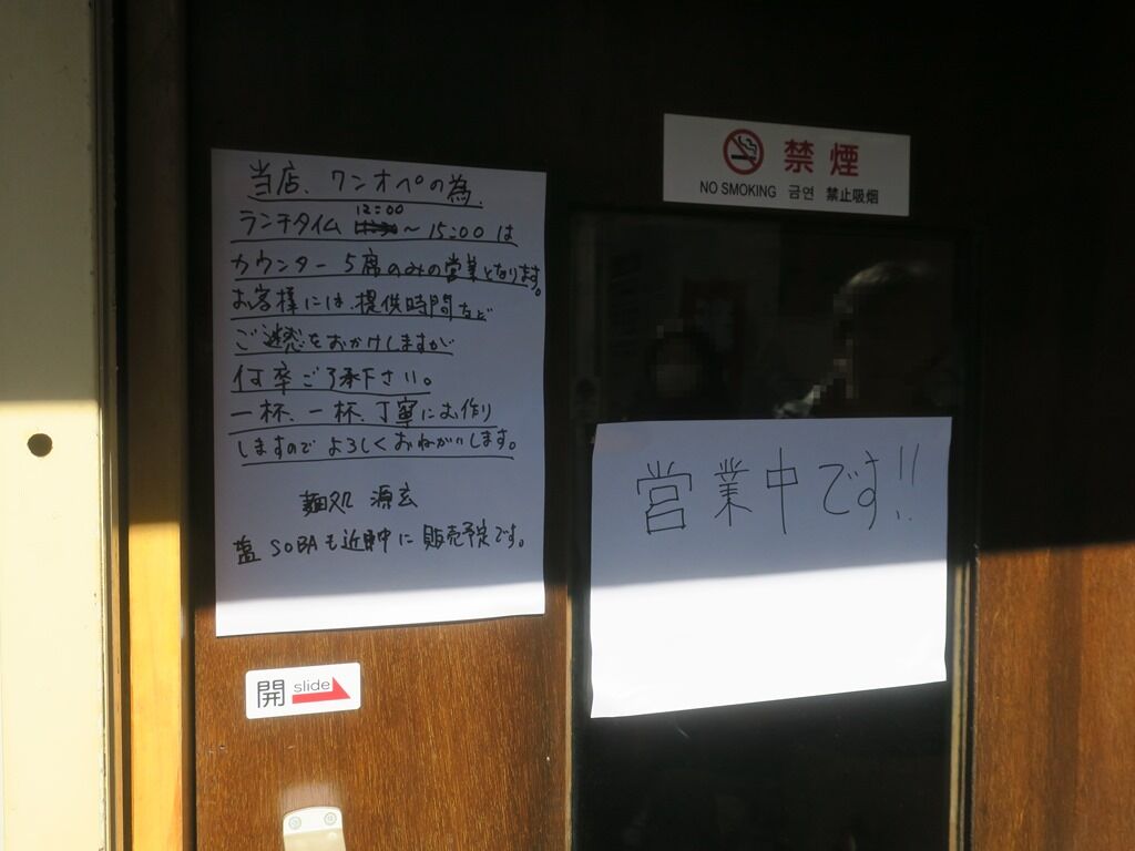 2020年2月8日オープン。店主さんは三つ葉亭・鶏そばそると出身。旨そうなオーラビンビンで、店休日不明ながら行ってみた。