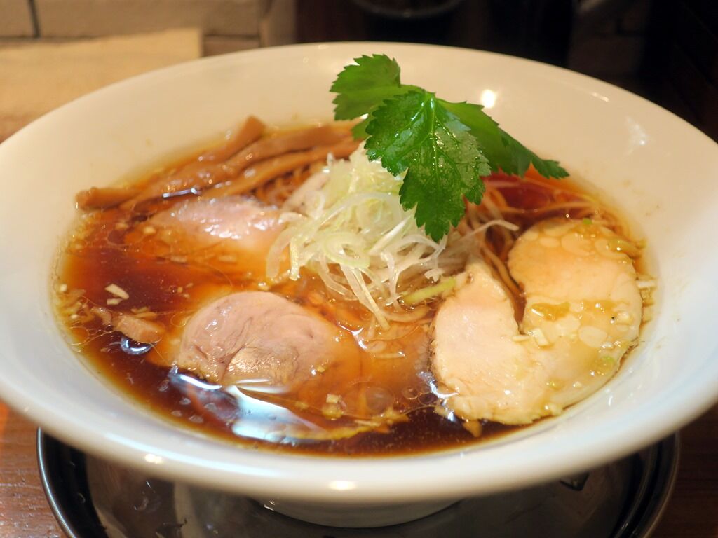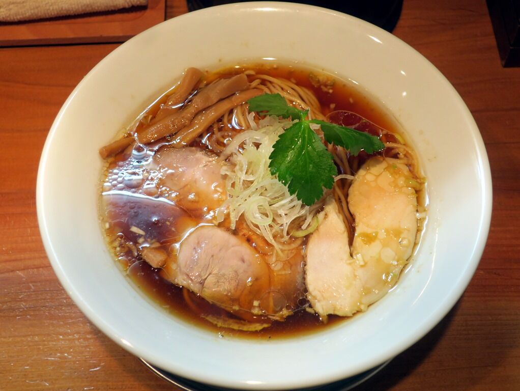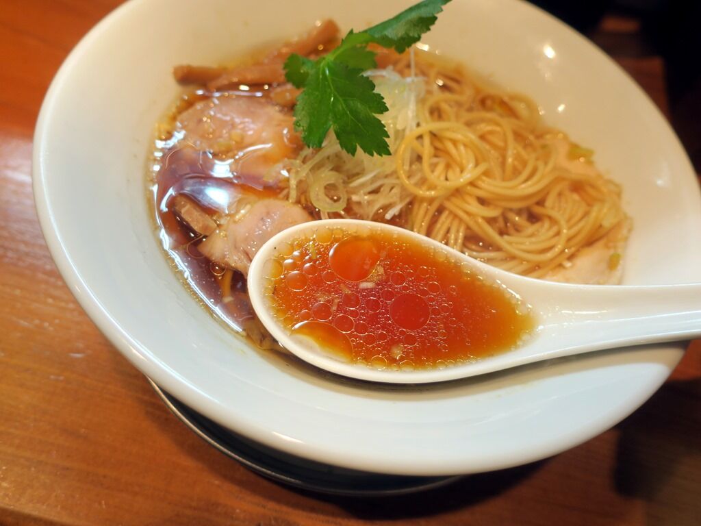 スープはさらさらの清湯無化調醤油味。総州古白鶏と美桜鶏の丸鶏をパイウオーターで炊いた出汁に、下総醤油とヒゲタ本膳の醤油、再仕込み醤油、薄口醤油のタレを合わせたもの。ほんのり甘めで醤油の立った日本蕎麦のつゆのような味わい。しみじみと沁み渡る味わいですごく美味しい!