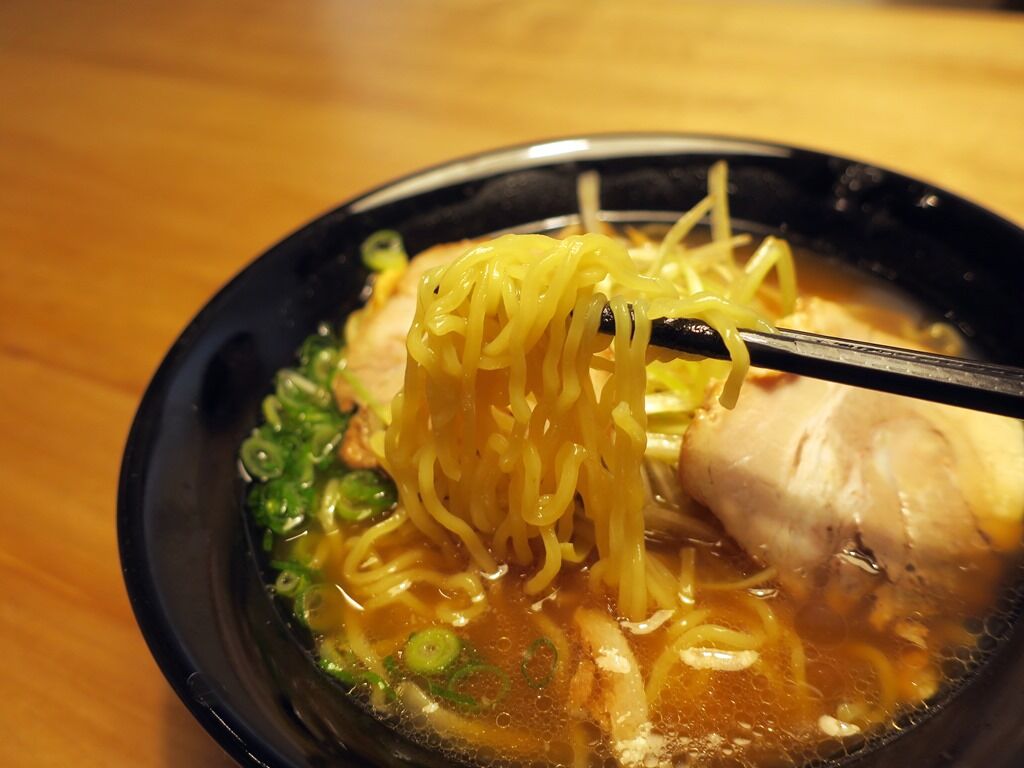 スープはさらりとしたライトな豚骨醤油。「とんこつ臭を極力抑え。背脂に頼らずにうま味を引き出すことにこだわったアッサリとんこつ!」とか。出汁もタレも控えめで油の旨味で引っ張るタイプ。もう少し地力が欲しいところ。