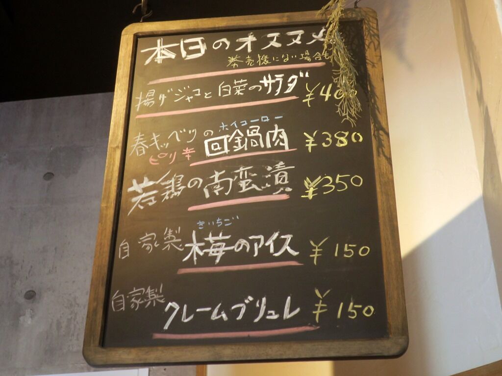 本日のオススメは店内黒板に記載。ですが、席の配置上カウンター席からは見えなさそう。