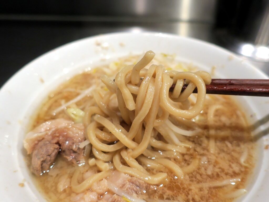 スープは非乳化のブタ出汁醤油味。細かい脂でコクをブースト。アブラはデファだと案外すっきり、油マシくらいがちょうどかも。個人的には乳化タイプが好みですが、非乳化型は食べやすいのがアドバンテージ。なかなか美味しい!
