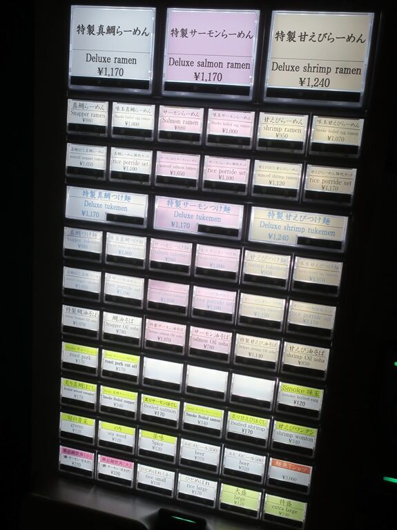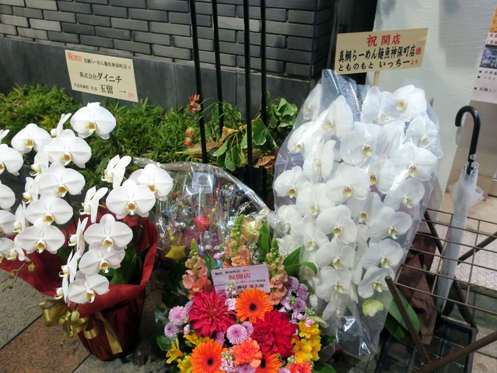 店頭開店祝花・胡蝶蘭は麺屋一燈、とものもとから。入店すると、まず交通系ICカードも使える券売機で食券購入です。