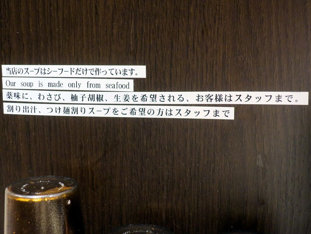 主なメニューは、真鯛らーめん880円、サーモンらーめん880円、甘えびらーめん950円、真鯛つけ麺880円、サーモンつけ麺880円、甘えびつけ麺950円、鯛油そば780円、サーモン油そば780円甘えび油そば850円、他。