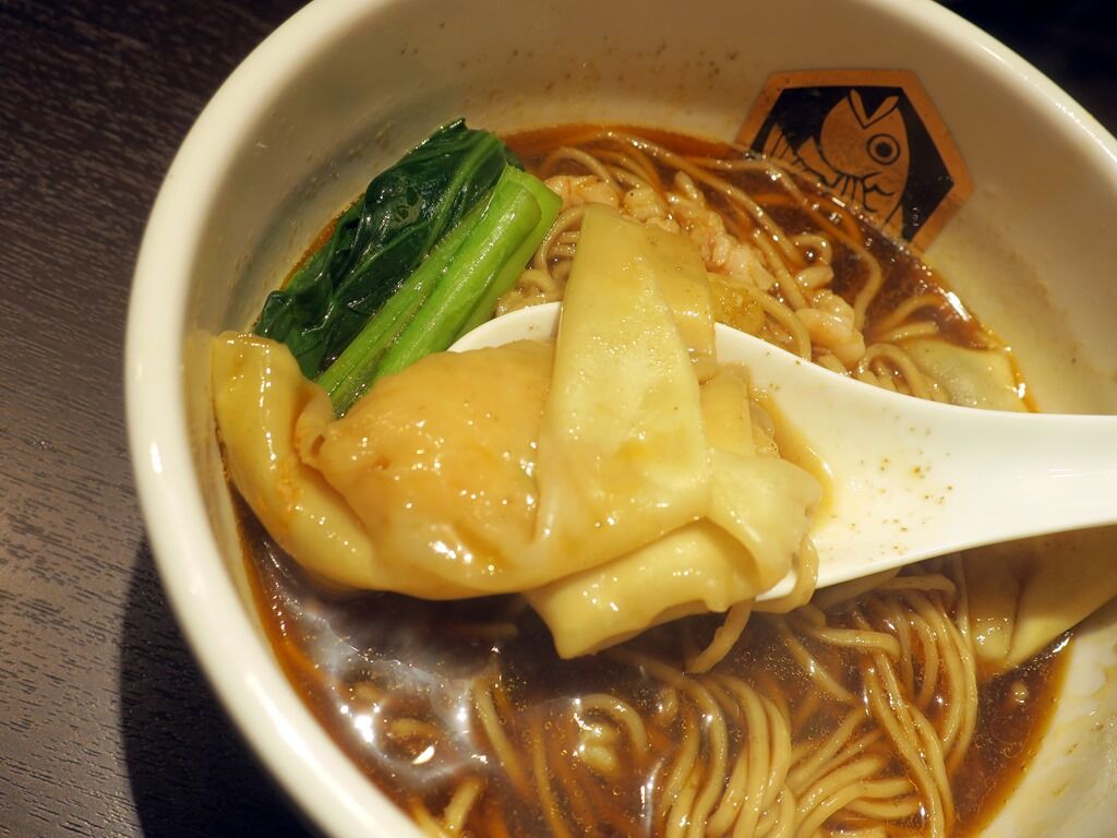 ワンタンはぷりっぷりの海老が丸ごと入り。スープもトッピングもワンタンの具も海老づくしで、エビ好きにはたまりません!