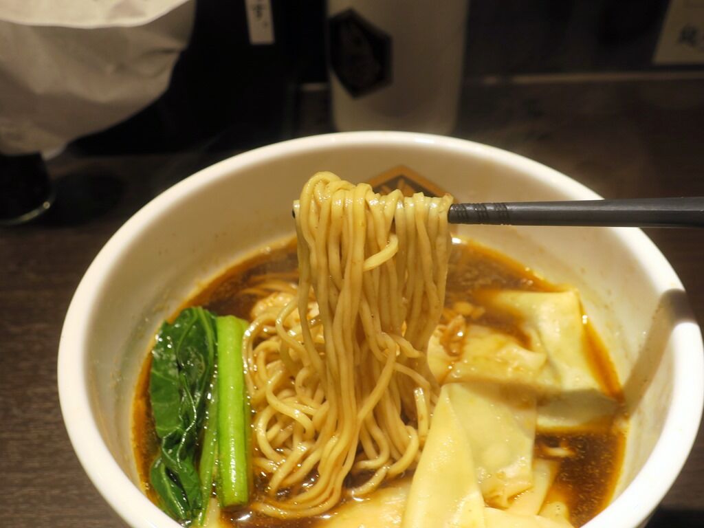 スープはさらさらの清湯醤油味。大量の甘海老と水だけで摂ったというスープは、まさに飲む甘海老と言った感覚。ほとばしる甘海老の風甘みと香り、突き抜ける甘海老の甘みとうま味がなんとも未知の食味。ご飯が欲しくなる味わいですごく美味しい!