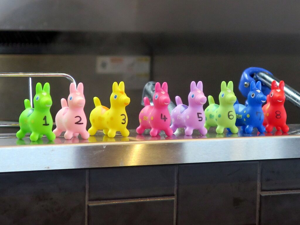 厨房に整列して待機するロディ君は、女子盛りのデザート防止アイテム。ロディ君と交換でデザート提供。当然持ち帰り厳禁。