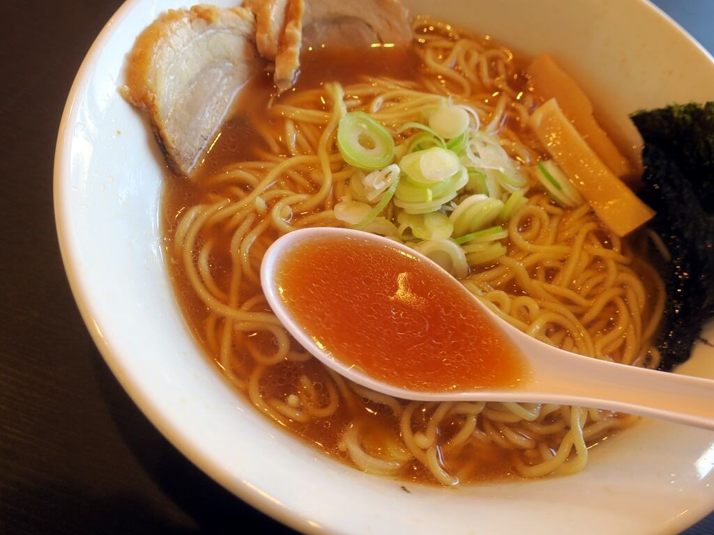 スープはややとろみのある豚骨醤油味。「背脂醤油ラーメン」というネーミングですが、背脂は見られず、乳化が進んでスープに溶け込んでる感じ。豚出汁のうま味とコクが存分に味わえるスープで、このままモヤシやキャベツの山にトッピングしても、スープがヤサイに負けなさそう。エネルギッシュでパワフルなテイストですごく美味しい!