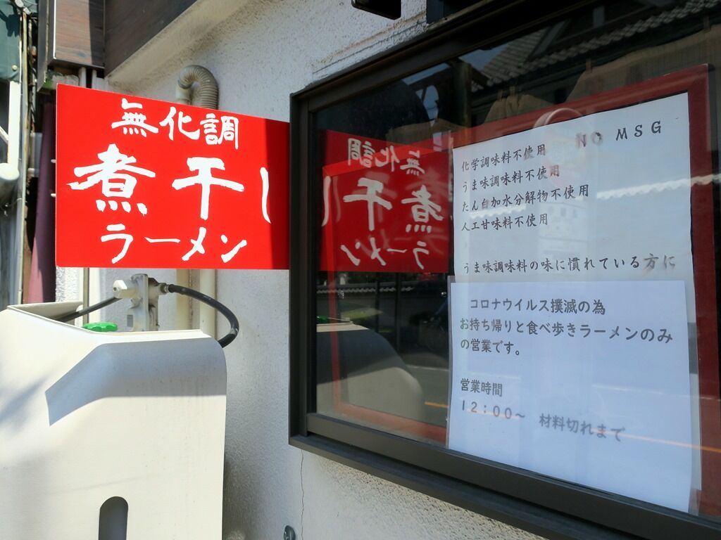 本川越の「中華SOBA にぼ乃詩」では店内飲食を休止して、テイクアウトの「食べ歩きラーメン」と冷凍ラーメンを販売中。