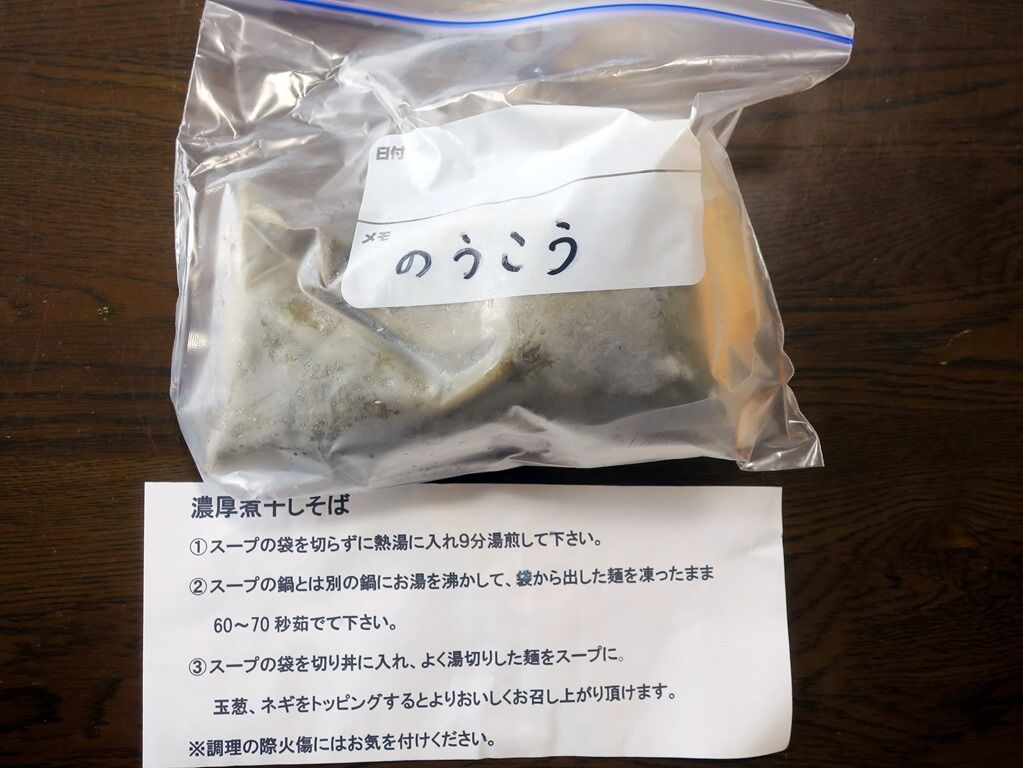 「濃厚煮干しそば」セット。内容はやはりスープと麺の2点。湯煎時間、湯で時間共に純煮干しそばと一緒。