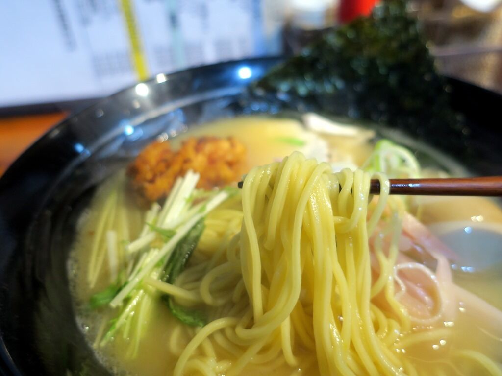 麺はストレート中太タイプ。ツルしこで鶏ほとば汁スープが良く絡みます。味玉は黄身が流れ出さないレベルのハーフボイルド。ザンギの旨さは言うに及ばず、マストのトッピングアイテムで忘れたら慚愧の念に苛まれること請け合いです。
