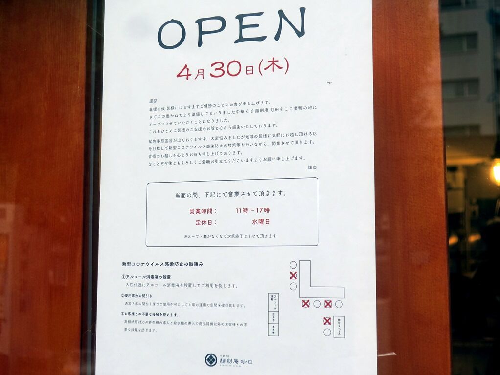 2020年5月9日、巣鴨の新店「麺創庵 砂田」へ。