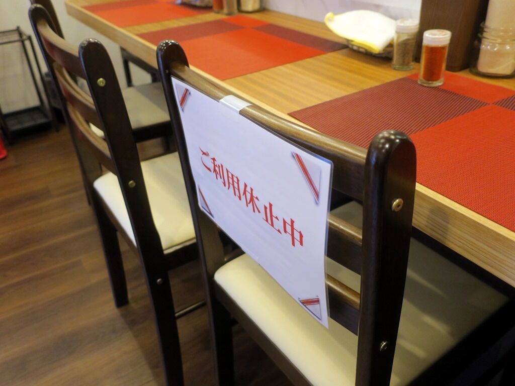 店内は厨房を囲むL字型カウンター7席(4・3)。ですが、席間を空けるため1席おきに使用禁止として、4席での営業。カップルが来ても1席おきに座らせる徹底ぶり。