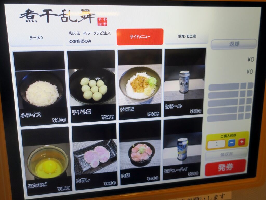 本日の限定は、鯛出汁のTKG400円。券売機「限定・お土産」のタブから限定4のボタン。画像は撮り忘れ