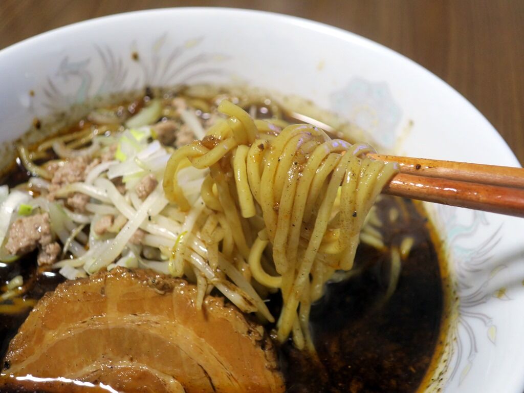 麺はストレート中太タイプ。ツルシコで刺激的なスープとの相性バッチリ。スパイシーさスープがめっちゃ絡んでウマ~です。