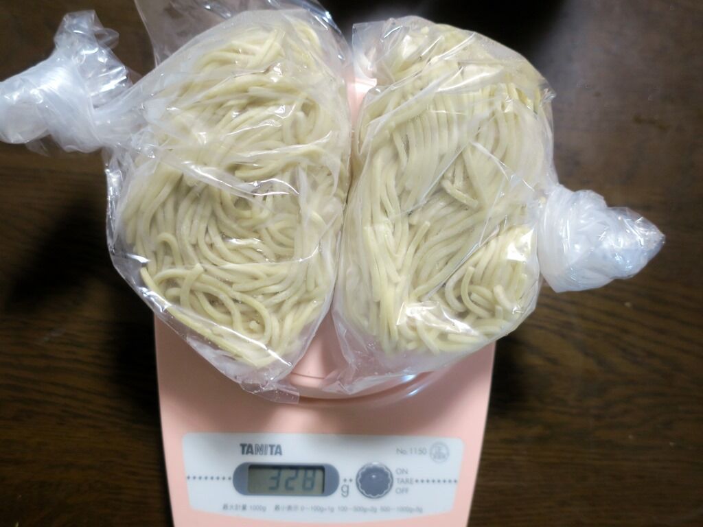 麺量は2つで328g。1玉164gほど。
