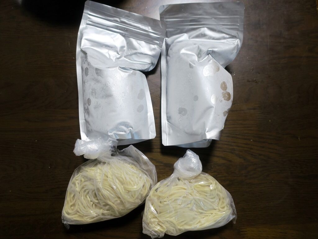 今回は2食セットを購入。スープパックx2、麺x2のセット。ですが、麺は1つの小さな袋にギュっと詰まって入った状態。麺と麺がみっちり密着してて、こりゃいかんと帰宅後ふたつの袋に分けました。スープのパックはこれまで購入した冷凍ラーメン中トップクラスにしっかりしたものだけに、麺の梱包が残念。