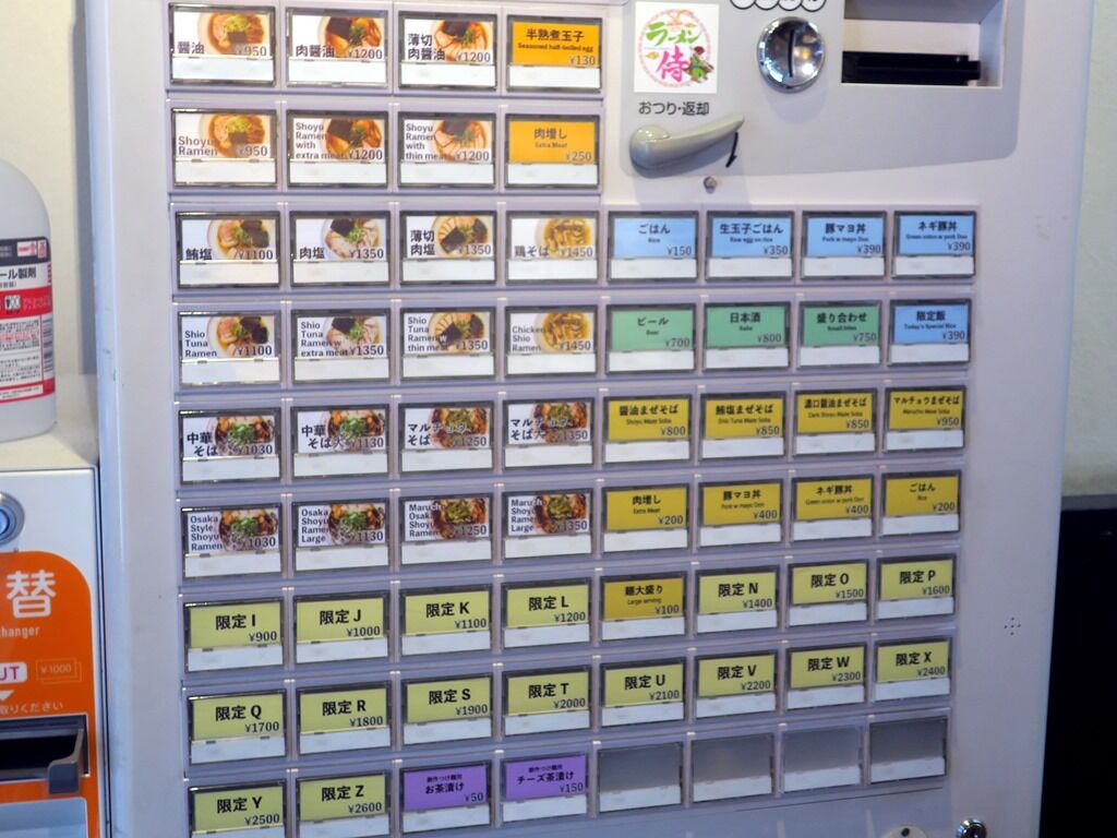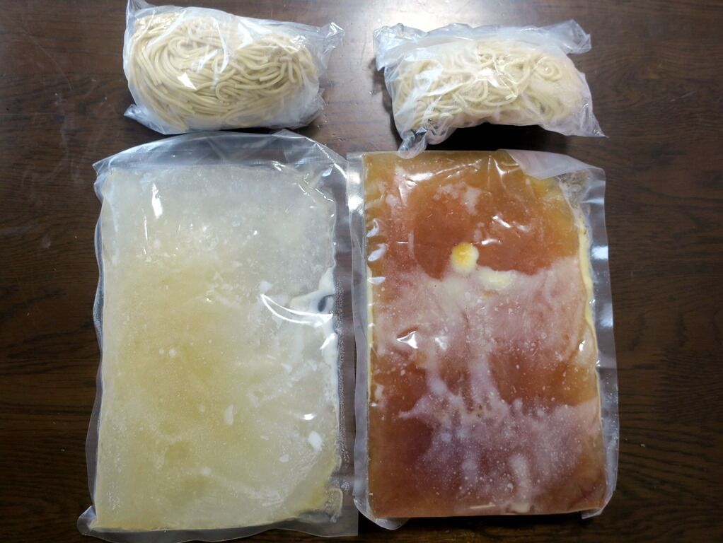 冷凍スープと生麺のセットのお持ち帰りは、醤油・鮪塩・東大阪風中華そば・マルチョウそばの4種。各1000円。お持ち帰りは券売機を使わず現金会計制。