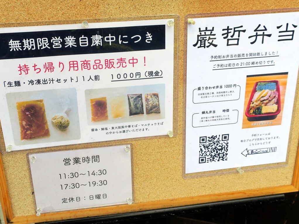 早稲田のラーメン巌哲さんでは、店内営業を休止してお弁当と冷凍スープ・生麺のお持ち帰り商品を販売中(6/1より営業再開予定)。ほん田@秋葉原(店内食)→卍力@秋葉原(お土産)→翔@御徒町(店内食)の後、こちらへ。