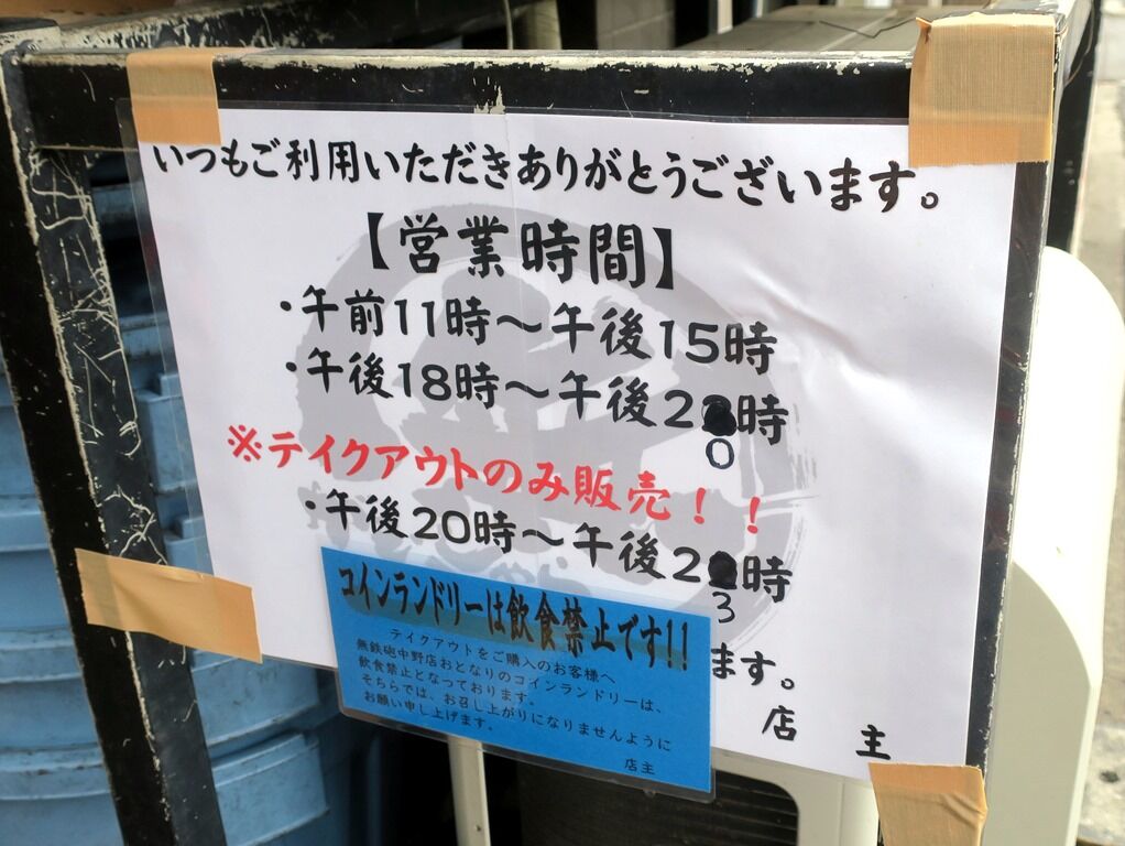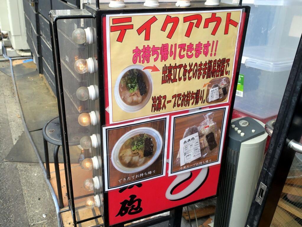 無鉄砲東京中野店では簡易容器でお持ち帰りしてそのまま食べれるテイクアウトのラーメンと、自宅で調理する冷凍ラーメンの2種類を販売中。花道で冷凍ラーメンゲット後立ち寄り。