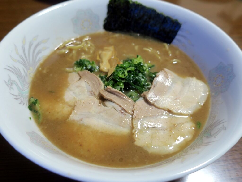 チャーシュー4枚、メンマx2、海苔、九条ねぎ付き。自前で用意したものはありません。