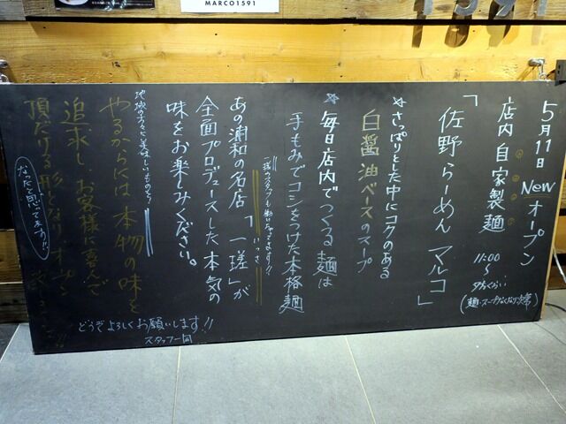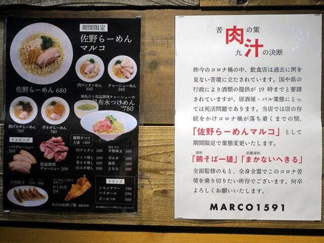 2020年5月11日オープン。ワイン食堂 マルコ1591が期間限定でラーメン店へリニューアル。ワインバルの佐野ラーメンが気になって。