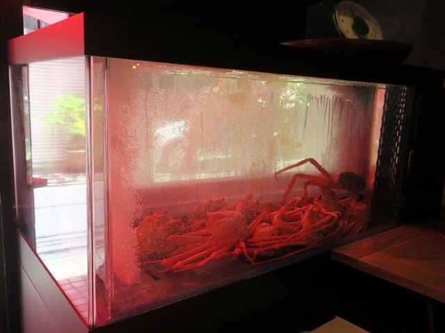 店の場所は学芸大学駅東口徒歩約2分。亀屋万年堂とかしわやの間の路地入って行った右手。入口入って左のレジ前に巨大な蟹の水槽があります。