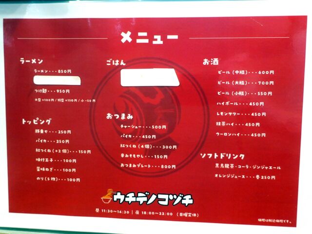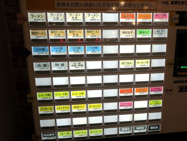 入店するとまず券売機で食券購入です。主なメニューは、ラーメン850円、ラーメン小800円、味噌ラーメン900円、つけ麺950円、パイカ250円、他。パイカは牛軟骨の煮込み。訪問時味噌ラーメンはX表示。