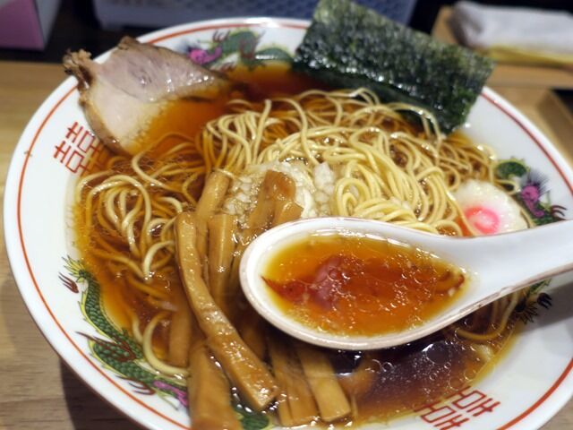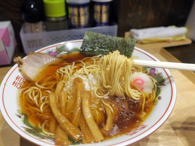 スープはさらさらの清湯醤油味。癖やアクのないあっさりとシンプルな八王子ラーメンで、スープと一緒に飲めちゃうほど細かい玉ねぎが味のアクセント。軽やかにスッと入ってくる感じで食べやすく、小腹が空いたときや飲んだ後にも良さげな仕立て。どこか懐かしく郷愁を誘う風情があって、とても美味しい!