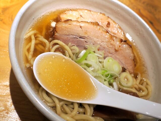 スープはさらさらの清湯醤油味。あさりやしじみなどの貝の旨みを閉じ込めたスープにタレは淡口醤油。関西淡麗系とでも言いましょうか。あっさりとした中に出汁の複雑で豊かで高貴なうま味が広がってすごく美味しい!